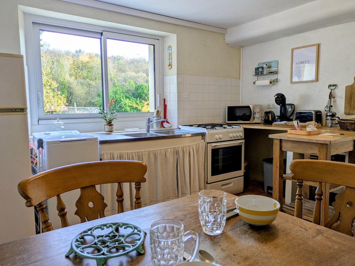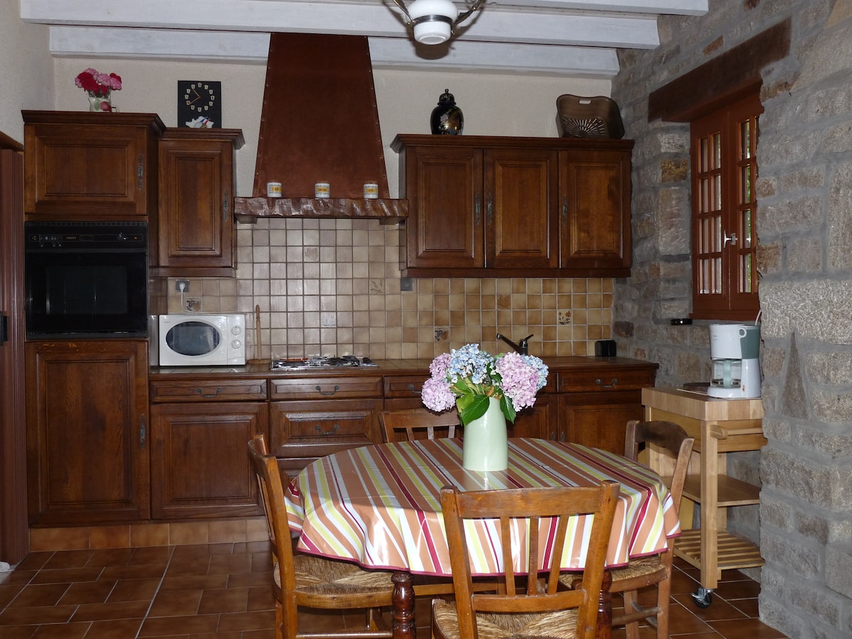 U Pont l'Abbé, prodavnice na pješačkoj udaljenosti, 200 m od GR34, smještaj se sastoji od dvije sobe u nezavisnom dijelu moje kuće. Ulaz je kroz zadnja vrata, bićete potpuno samostalni. Sastoji se od spavaće sobe sa krevetom od 140 kreveta, kade i sudopera, druge sobe sa sofom na razvlačenje, frižidera, ploče za kuvanje, mikrotalasne pećnice, klasičnog aparata za kafu i nespresa, kuvala za vodu i kuhinjskog posuđa (bez sudopera) i TV-a (hromirana)
