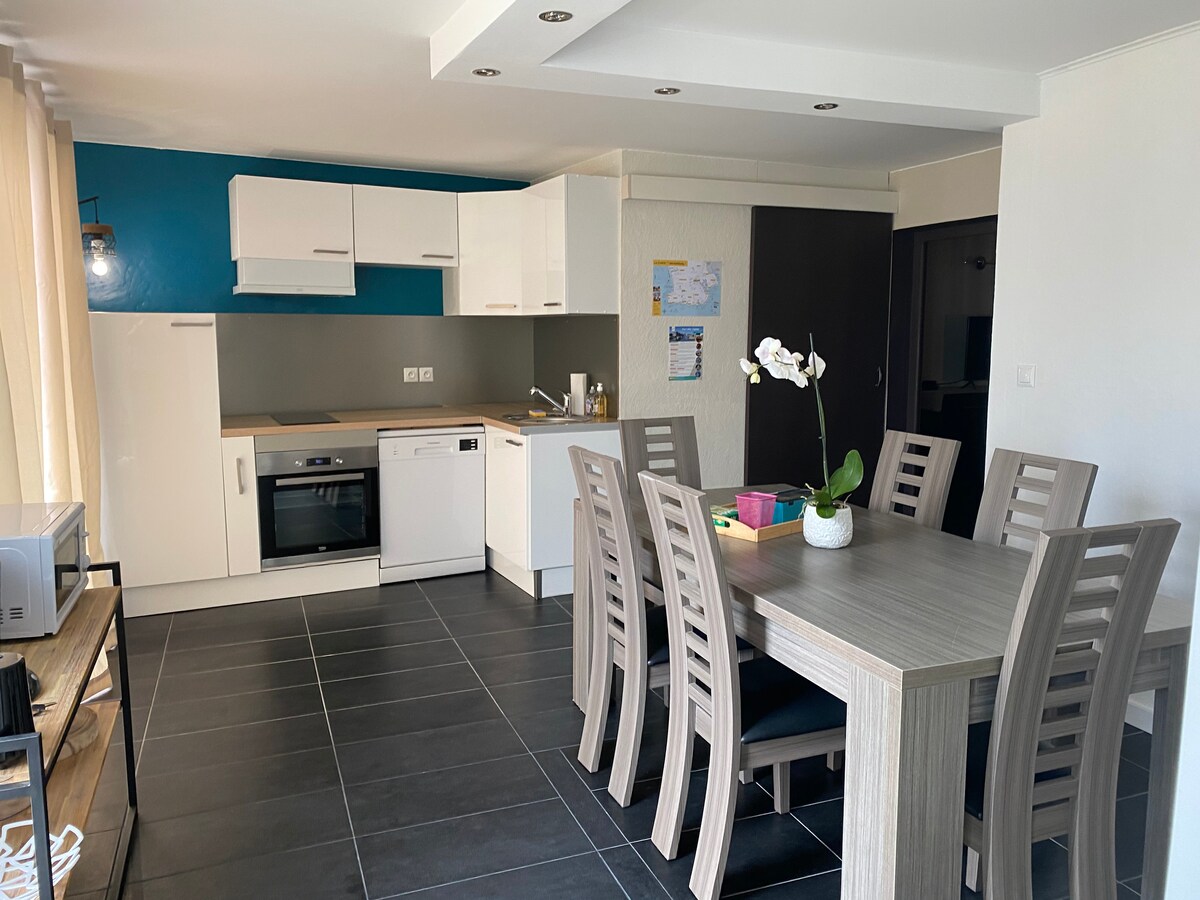 Stan, u mirnoj rezidenciji, površine 40 m² sa balkonom od 4 m2 (izložen na zapadu/jugozapadu), u blizini centra grada Pont l 'Abbé (9 minuta hoda, 700 m). Boravićete u srcu zemlje Bigouden da biste otkrili Le Guilvinec (ribarska luka), Penmarc 'h (svjetionik Eckmühl), Bénodet (polazak za arhipelag Glénan) i obližnje plaže (10 min) u Leskonilu, Loktudiju, ostrvu Tudi... Neke aktivnosti u blizini za mlade i stare: bioskop, bazen, surfovanje, jahanje, šetnja ili vožnja biciklom.