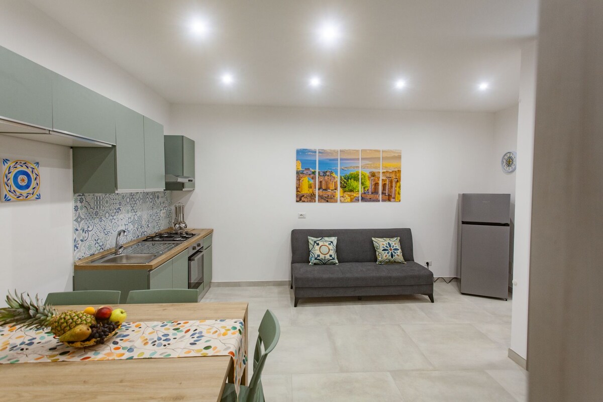 Uronjena u selo Taormina, 10 minuta vožnje od istorijskog centra i 5 minuta vožnje od mora, kuća je opremljena prelijepim zajedničkim bazenom sa slanom vodom (otvoren od 1. aprila do 31. oktobra) i velikom zajedničkom baštom koja je u potpunosti upotrebljiva. Sastoji se od elegantne dvokrevetne spavaće sobe, velikog i svijetlog kupatila i privatne kuhinje koja se nalazi u zasebnoj prostoriji, nekoliko metara od glavne strukture i kompletna sa svakom udobnošću.