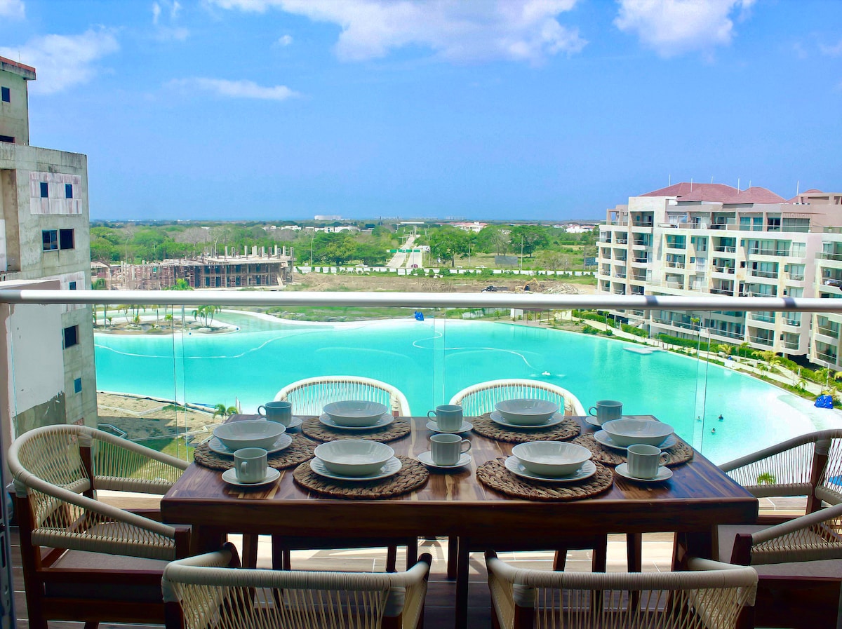 Želite da se opustite, uživate u prirodi i uživate u spektakularnom pogledu? Uživajte u jedinstvenom boravku u našem stanu sa direktnim pogledom na kristalnu lagunu, idealnoj za opuštanje u neuporedivom okruženju. Smješten u Baia Kristal, možete uživati u mirnom i ekskluzivnom okruženju koje je udaljeno samo 10 minuta od plaža/aerodroma i 15 minuta od istorijskog centra. Iskoristite ekskluzivne sadržaje u kondominiju dok istražujete sve što Kartahena ima da ponudi. Odlično mjesto za vaš odmor!
