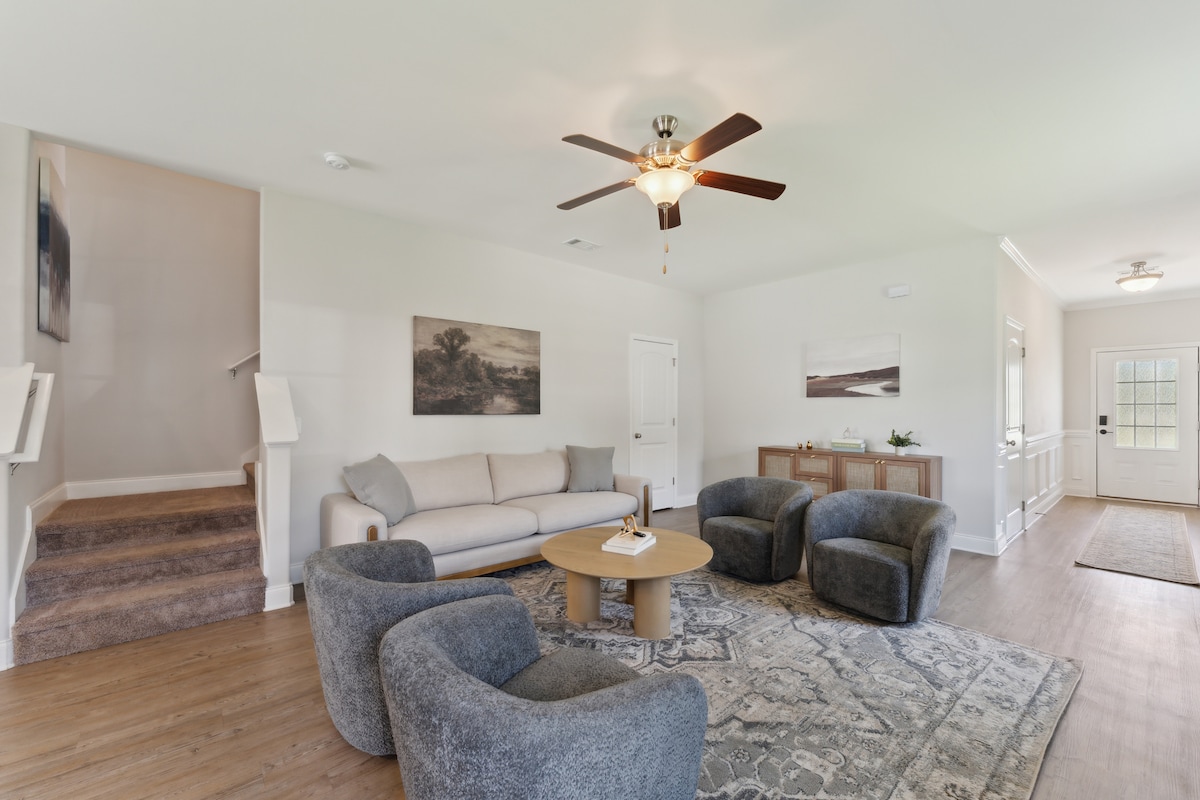 Uživajte u ovom novoizgrađenom smještaju 4BR 2BA u srcu Poolera, GA! 1,6 km od ulica I-95 i I-16 i samo mintues od aerodroma Savana. Savršen za poslovne putnike ili porodice, ovaj prostrani smještaj ima moderne sadržaje, Wi-Fi od 500 MB, Dell desktop računar sa laserskim štampačem i veb kamerom, prostor za vježbanje, veliko ograđeno dvorište i udobne stambene prostore. Opustite se nakon napornog dana ili istražite sve što Puler i Savana imaju da ponude - čeka vas idealna baza!