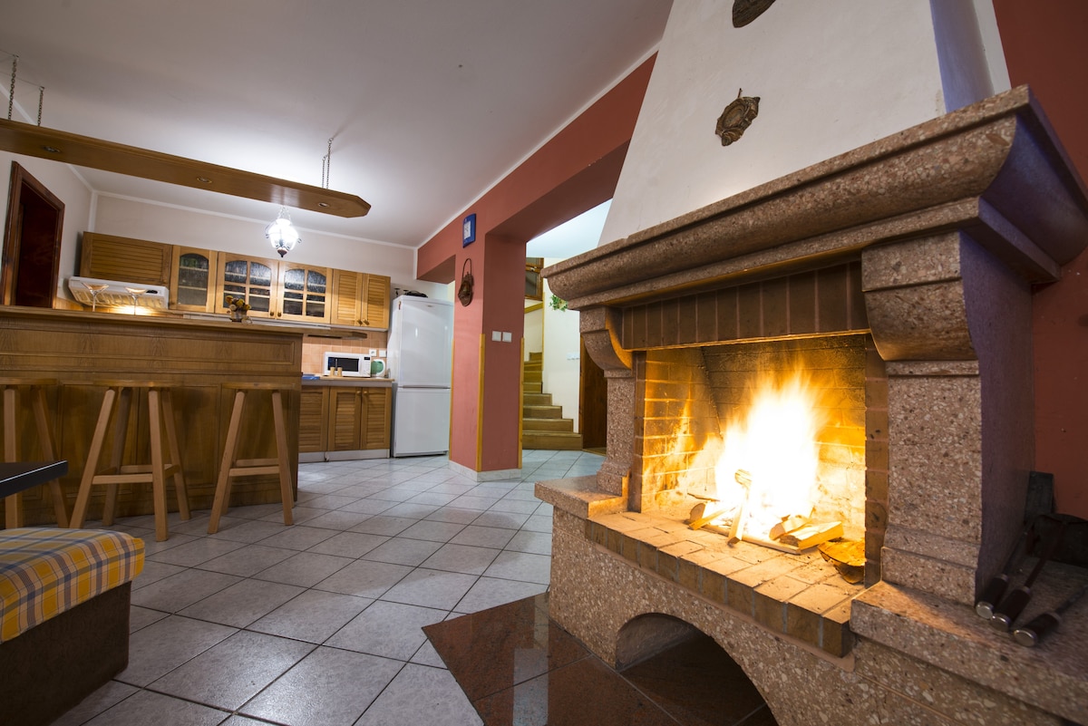 Seoska kućica Javor s kaminom u zatvorenom prostoru