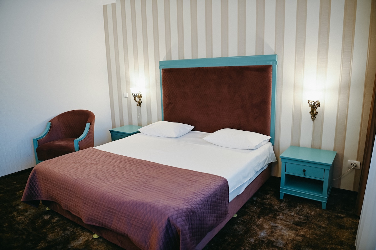 Stay in a bright and serene room inspired by classic charm. It’s your personal retreat—ideal for unwinding after meetings or exploring the city. With garden views, refined details, and a calm atmosphere, the space feels smooth, elegant, and easy. Welcome to a peaceful stay in Iasi.