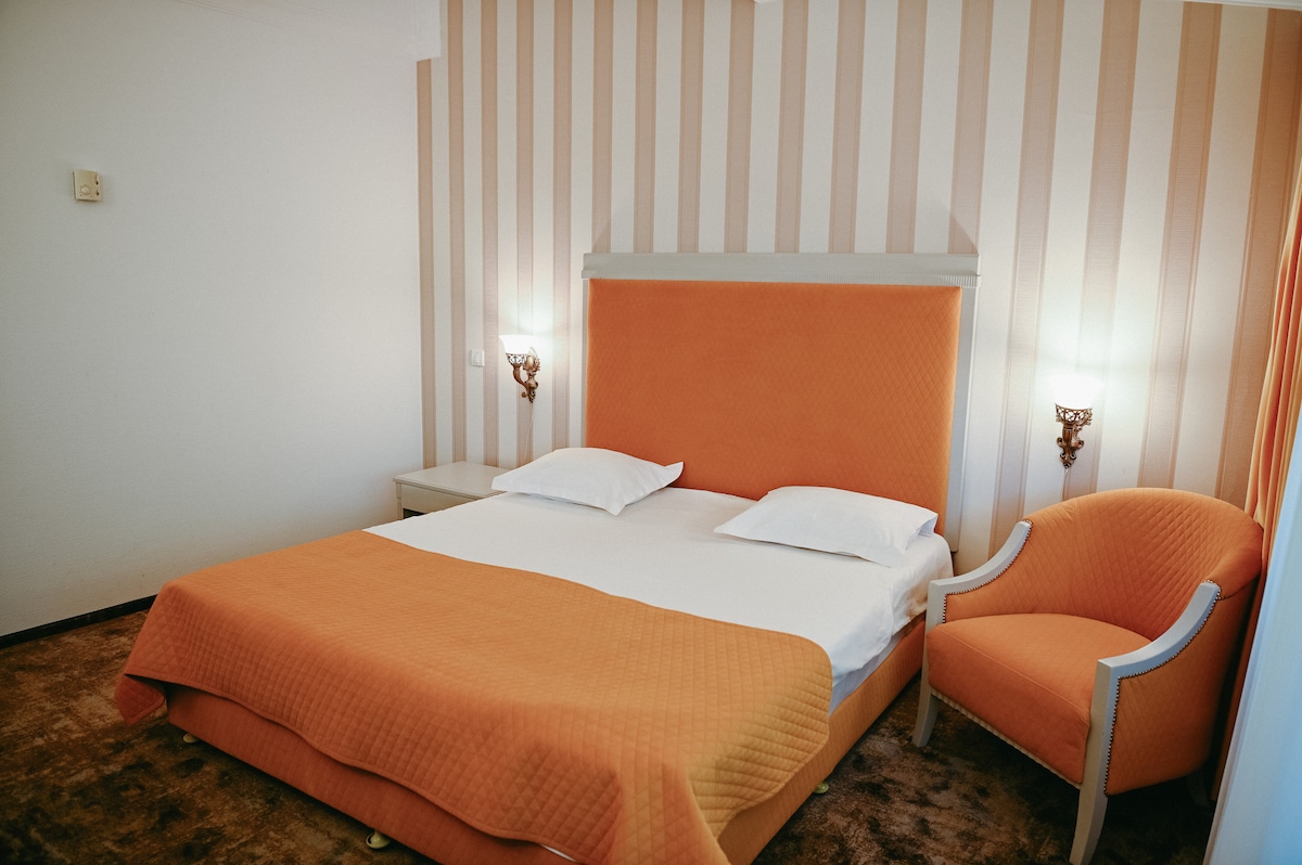 Step into a refined space designed for calm and comfort. This bright, classically styled room is your private hideaway—ideal after a day of work or city exploring. The quiet atmosphere and elegant details create a stay where everything feels just right. Your Iasi escape begins here