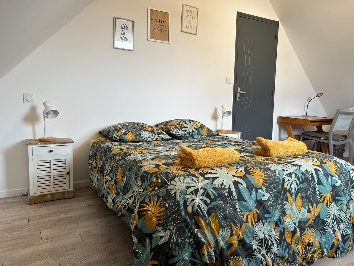 Nezavisna i potpuno renovirana kuća na visini Binic-Etables sur mer. Smješten u srcu farme konja i 2 koraka od mora, iskoristite blizinu plaža i luke (2 km) sa prednostima i mirnoćom sela. U prizemlju: opremljena kuhinja, kupatilo/vešeraj, dnevni boravak sa pogledom na terasu i glavni apartman sa bračnim krevetom (180 cm) i kupatilom sa kadom. Na spratu: spavaća soba sa bračnim krevetom 160 cm i krevetom za jednu osobu, WC šolja. Ograđena bašta/parking