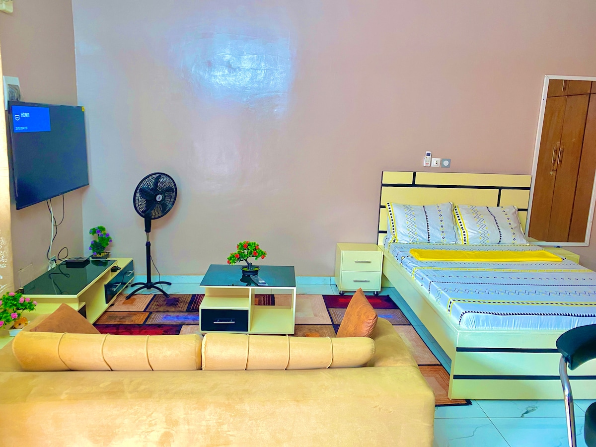 Namještena 🏠rezidencija Korhogo 📍 Okrug katastrofe u školi TOURE📍 SADRŽAJI: ☑️Dnevna soba ☑️ Jednostavan pristup, blizina asfalta 43-inčni ☑️televizor ☑️ Besplatan parking ☑️ Trpezarija i radni prostor Prozračna ☑️soba sa izuzetno udobnim krevetom ☑️ Klima-uređaj na sjevernom polu ☑️Opremljena kuhinja (frižider, šporet, blender...) ☑️Kanal+ 🛑Cijena 15.000f / dan (24 sata) Moguć je popust za duže boravke