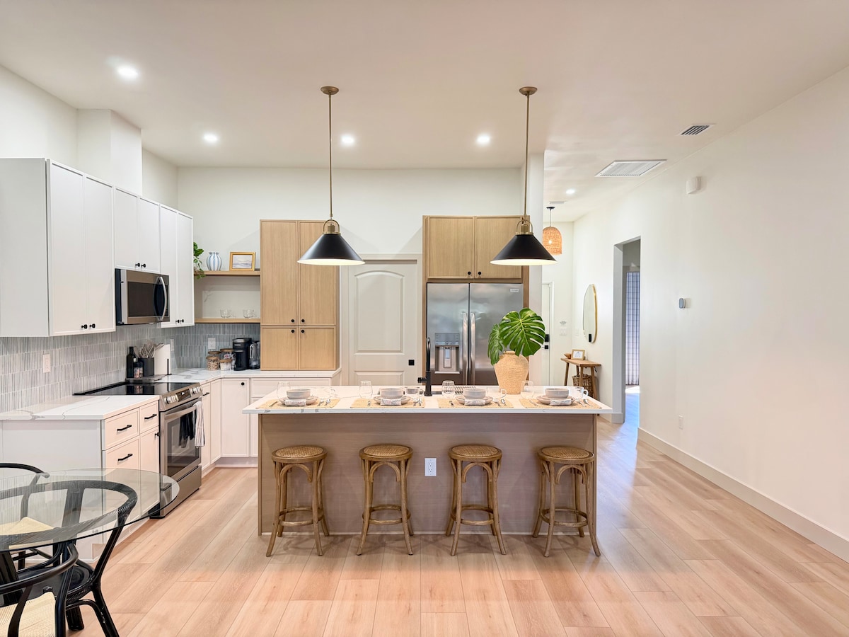 Kuća na adresi 3900 Rosemary Drive prima kućne ljubimce i ima parking za 2 automobila. Opustite se i uživajte u privatnom odmoru, spoljašnjem dvorištu, tiki baru, ležaljkama za sunčanje i đakuziju. Stan otvorenog tipa ima 80-inčni Peacock TV. Uživajte u Netfliksu, Amazon Prime-u ili drugim pretplatama koje imate tako što ćete unijeti lozinku i PIN za svoj dom. U dnevnom boravku se nalazi dvosjed sa dva sjedišta, podesiv u poziciju kao u bioskopu, mali trpezarijski sto/radni prostor sa pristupom Wi-Fi mreži i potpuno opremljena kuhinja.