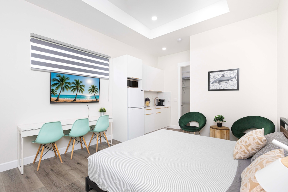 Veliki, neobičan, miran kondominijum u srcu ostrva Venecija. Kratka pješačka udaljenost do svih idiličnih prodavnica u centru grada, restorana, zabave, barova, umetnosti i brze vožnje biciklom do neverovatne plaže. Uključeni su bicikli. Vrlo prostrano i dobro opremljeno iznajmljivanje pogodno za kratkoročne ili dugoročne posjete. Velika potpuno opremljena kuhinja. Mnogo sadržaja i opreme za plažu! Udoban bračni krevet. Parking je besplatan. Venice Beach 1,8 km / Sharkey 's Restaurant & Pier 1,7 milja / kafić i centar grada udaljeni su samo 3 ulice.