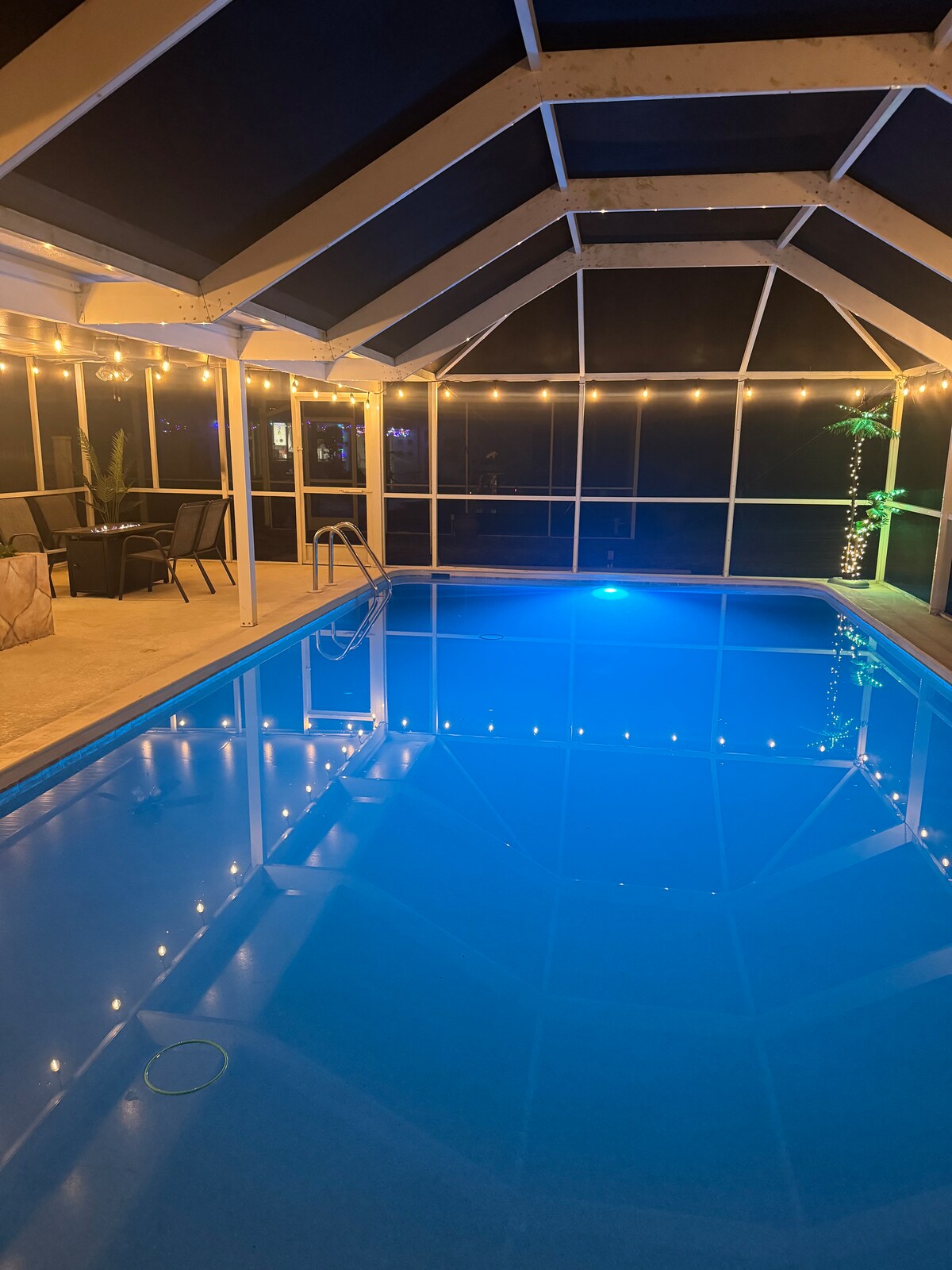 Welcome to Golf Cove Paradise ☀️ A peaceful resort style outdoor space + private + oversized solar heated pool creates a perfect vacation oasis. Covered lanai = shade. BBQ & watch your favorite sports on 55” outdoor tv. Walk the golf cart paths, swim laps, get a tan, read a book, play music & games, sip on tropical drinks & float all your cares away. Pretty sunsets overlooking a golf course setting. A.M. coffee outside to hear the birds sing. Carefree outdoor living is what it’s all about here.