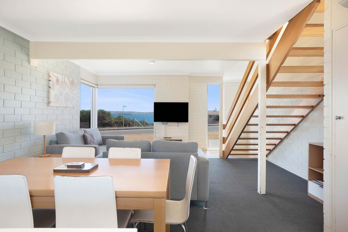 Po dolasku možete da se opustite na velikoj terasi sa pogledom na more, dok pijete čašu vina ili kafu. Dom koji je novouređen sa neograničenim WI-FI MREŽOM za vašu udobnost i život otvorenog tipa. Dovoljno prostora u dvorištu da deca mogu da se igraju u prostoru i parkingu Samo skok, preskočite i preskočite na lokalnu plažu. Kols i Aldi su odmah uz put, a grad Viktor je udaljen samo 5 minuta vožnje, do lokalnih kafića i restorana . Midlton je udaljen 10 minuta vožnje, kao i Horseshoe Bay.