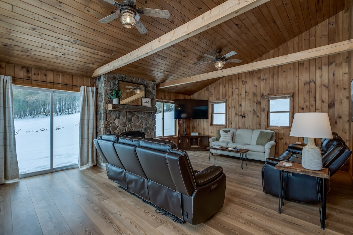 Cijenite ljepotu Adirondeka i uživajte u udobnosti pažljivo uređenog doma koji promoviše opuštanje. Prvi sprat ima otvoren koncept i uključuje prostranu kuhinju, trpezariju i prijatan dnevni boravak sa visokim plafonom katedrale i umetkom za kamin. Udobno se smestite i čitajte pored vatre, gledajte TV ili igrajte društvene igre. Dok sunce zalazi, uživajte u opuštajućem kupanju u ogromnoj hidromasažnoj kadi, a zatim se povucite u jednu od četiri spavaće sobe na spratu.