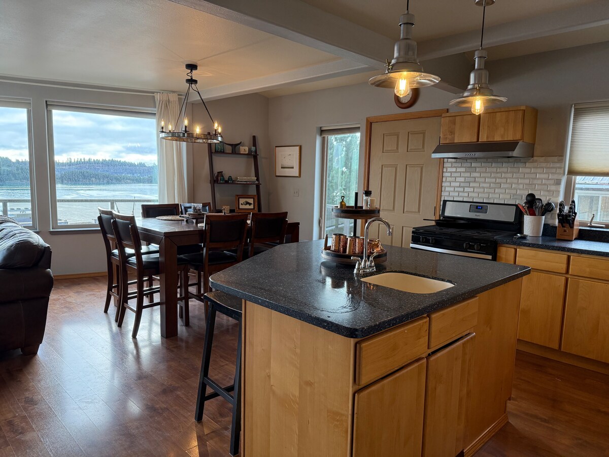 Ukoliko tražite prekrasan pogled na prelepu luku u Kodiaku, onda je ovo pravo mesto za vas! Na spratu, prostrana dnevna soba u potkrovlju sa nadsvođenim plafonima ima najbolji pogled - Opustite se uz kafu ujutru, a ako budete imali sreće, možda ćete uočiti i orke kako plivaju. Ili provedite vreme na terasi tokom sunčanog letnjeg dana roštiljajući domaći kuvani obrok. Imajte na umu da morate biti spremni da se penjete uz i niz stepenice da biste pristupili domu.