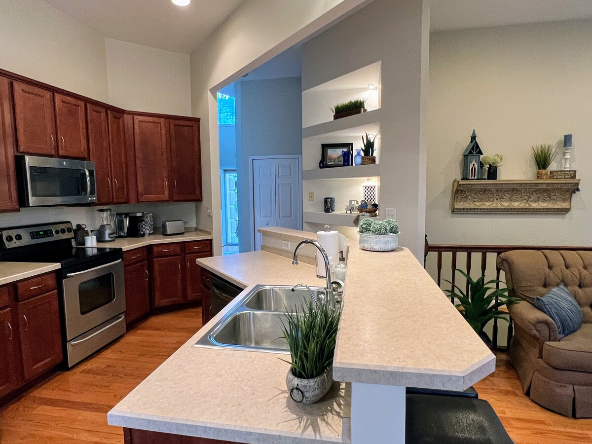 Kliknite na dugme u obliku srca u gornjem desnom uglu da biste ponovo pronašli naš smještaj. Doživite najbolje od Hepi Velija u našoj modernoj, nedavno renoviranoj kući u nizu s 3 spavaće sobe i 2,5 kupatila! Savršen za 9 osoba, ovaj svijetao prostor u mirnom kutku Stejt Koledža prožet je duhom Univerziteta Pensilvanija. U sadržaje spadaju profesionalna kuhinja, poseban prostor za rad sa brzom Wi-Fi mrežom, udobna terasa sa roštiljem i sadržaji prikladni za porodice. Idealna za vikende ispunjene igrama, poslovna putovanja ili porodične posjete, „Cubhouse“ je vaša savršena baza.