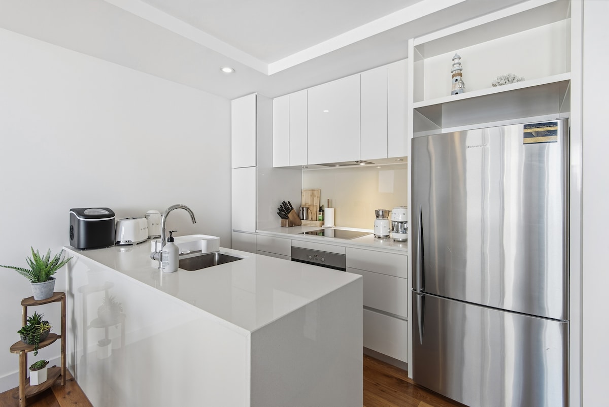 Dobro opremljen studio apartman na najboljoj lokaciji! Samo 2 minute hoda do plaže, 3 minute hoda do svih predivnih prodavnica, barova i restorana u ulici Bej i samo 5 minuta hoda do lake željeznice koja će vas odvesti direktno u CBD. Postoji besplatan parking na ulici. Stan ima udoban kožni kauč, TV, neograničen Wi-Fi, veliki bračni krevet. Kompaktna kuhinja ima konvekcionu/mikrotalasnu rernu, fritezu, aparat za tostiranje, šporet za pirinač sa posuđem, pribor za jelo, stakleno posuđe