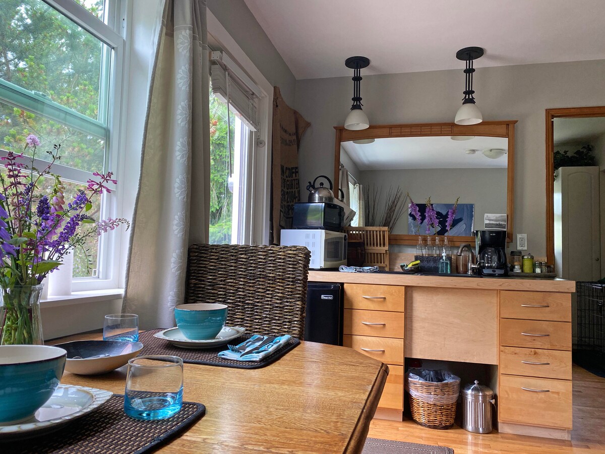 Uživajte u ovom svijetlom, sunčanom utočištu i svemu što Port Taunsend nudi bez ulaska u automobil. Hummingbird Suite je velika soba (625 kvadratnih stopa) koja nudi izuzetno udoban bračni krevet, prostor za sjedenje s toplotnom pumpom za klima-uređaj i grijanje + šporet na propan, bračni krevet na razvlačenje, privatno kupatilo, čajnu kuhinju, TV, terasu s ulazom u baštu. Okružen sa devet sunčanih prozora za predivan pogled na more i baštu. Šetnja do parkova, plaže, restorana u centru grada i u centru grada, kafe, pekare i zabave. Deca su dobrodošla!