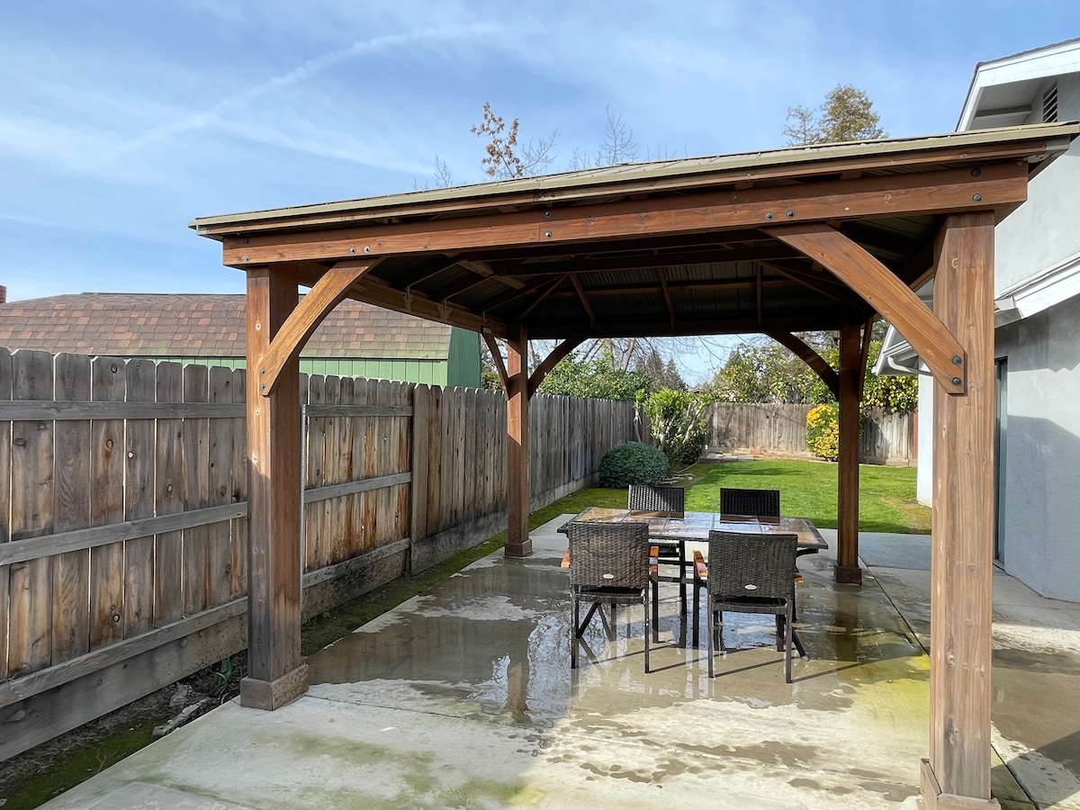 Dobro došli u Egziter, Kalifornija - kapija do Sijere! Exeter je udaljen 28 milja od ulaza u Nacionalni park Sekvoja - dom DIVOVSKOG Redvudsa. Naš dom, koji se nalazi u centru grada, nalazi se na pješačkoj udaljenosti od centra Eksetera, poznatog po prelepim muralima, antikvarnicama, buticima i restoranima. Vaš privatni apartman za goste sastoji se od 1000 kvadratnih metara stambenog prostora koji uključuje igru/dnevnu sobu, trpezariju, kupatilo i spavaću sobu, kao i spoljašnje dvorište sa sjedištem za dvoje.