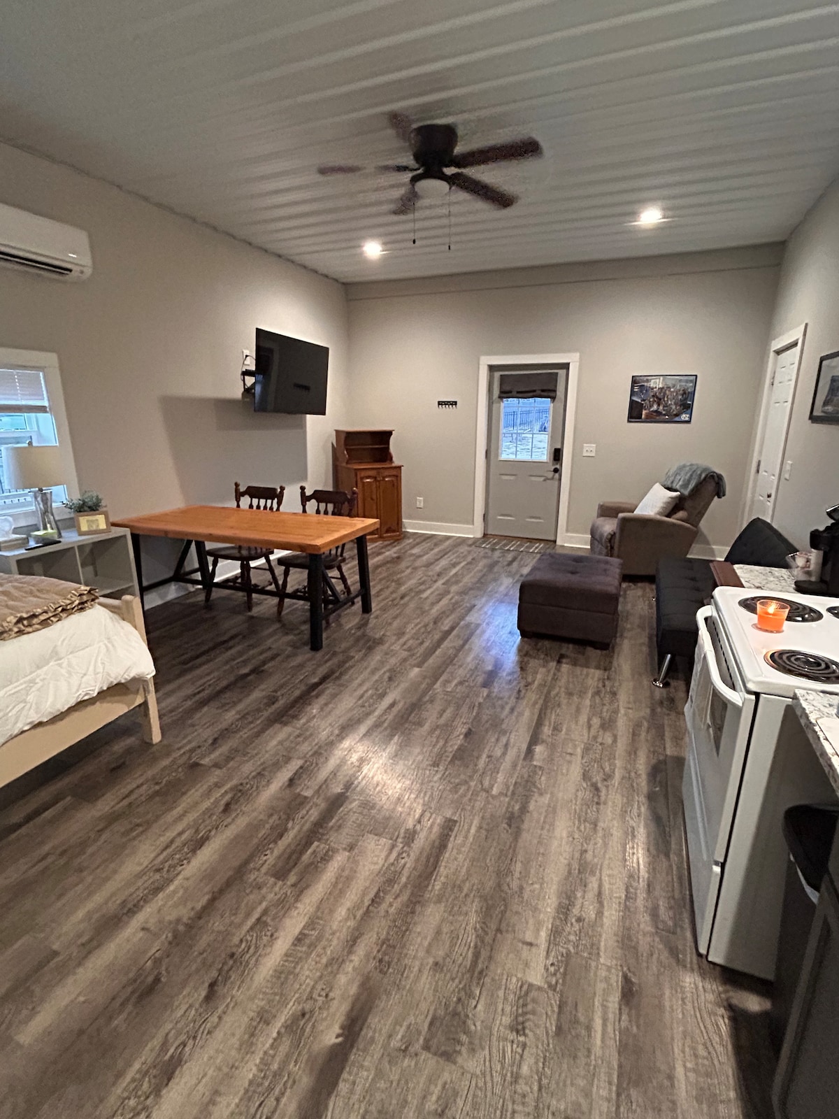 Nakon što smo proveli nekoliko godina živeći u srcu Nešvila, kupili smo ovu nekretninu od skoro 3 hektara kao mladenaca i sanjali da ga jednog dana pretvorimo u mini farmu. Volimo da imamo prostor i tišinu i želimo da ga podelimo sa vama! Ovaj AirBNB je mali jednosoban stan povezan sa našom radionicom iza naše glavne kuće. Naši gosti mogu da uživaju u mirnom prostoru koji uključuje potpuno opremljenu kuhinju, trpezariju, dnevnu sobu i unutrašnje dvorište. Bazen je otvoren od maja do oktobra sa nekoliko pravila/sati.
