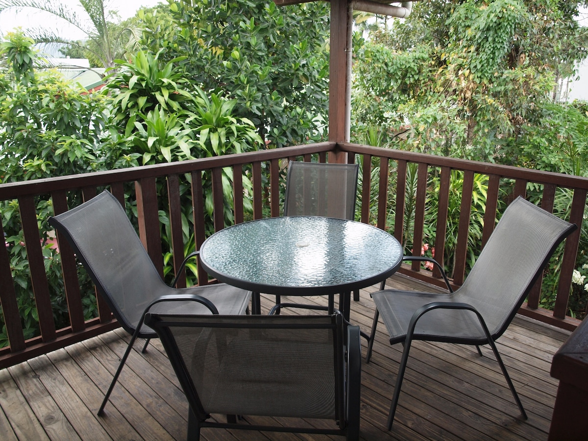 Mali komadić raja, sa velikim bazenom pred vratima i plažom na koju možete brzo da se prošetate. 5 minuta vožnje do Palm Kouva i 30 minuta do grada. Naša gostinjska kuća s temom plaže u našoj tropskoj bašti ima sve udobnosti doma. Prostran, klimatizovan, sa kuhinjom, roštiljem i namještajem pored bazena. Besplatan Wi-Fi + Netflix. Naša kuća se nalazi preko puta vrta, pa smo vam na raspolaganju za lokalne preporuke ili bilo šta što vam zatreba. Dođite i ostanite, voljeli bismo da podijelimo naš mali komadić raja sa vama!