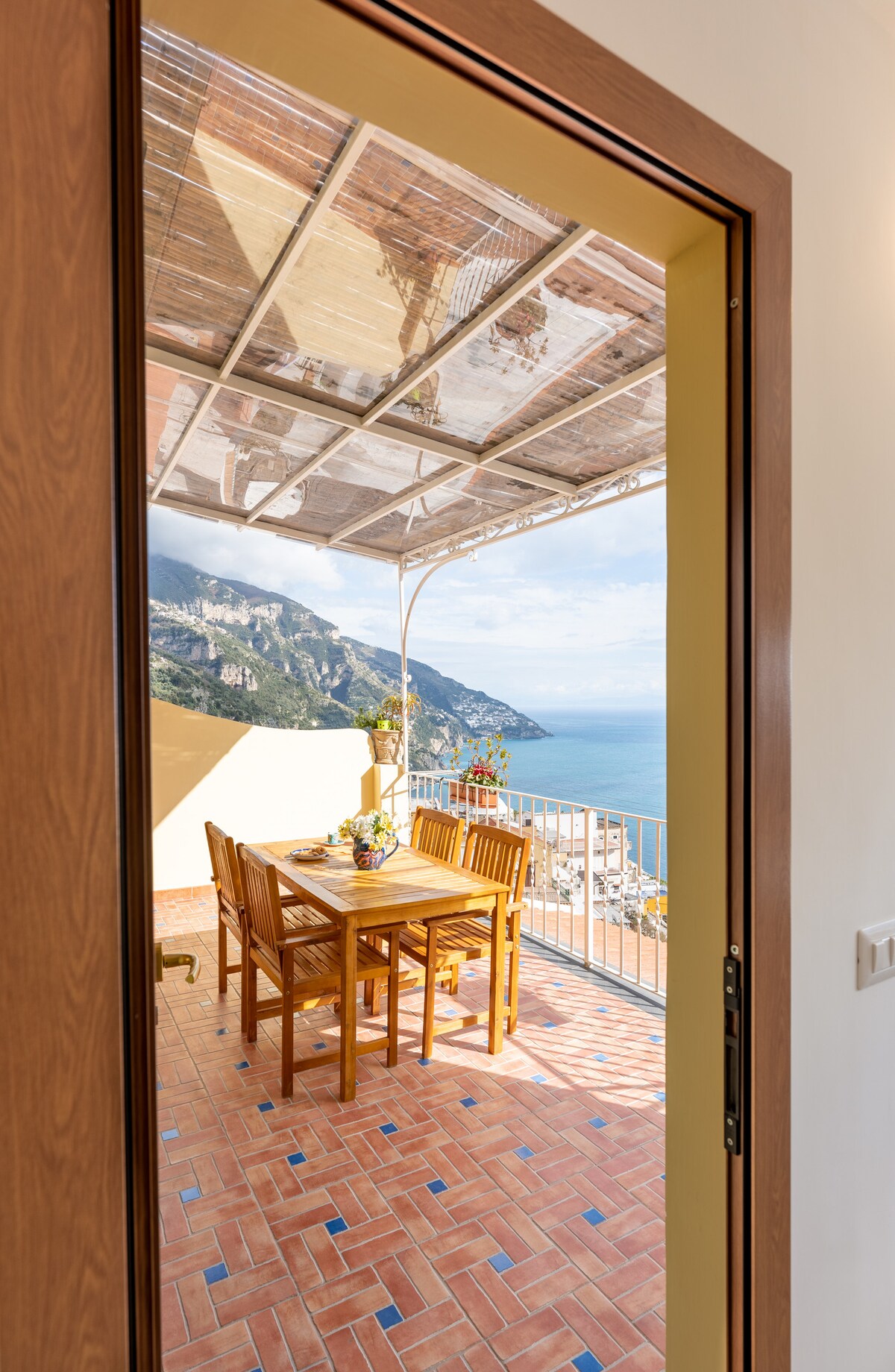 Novouređen jednosoban stan na najvišem katu u četvrti Positano u četvrti San Nicola s prekrasnim i neometanim pogledom na Amalfijski obalni zaljev. Kauč na razvlačenje može da primi još 2 gosta. Autobuska stanica je blizu početka Sentero degli dei. U blizini se nalazi mala prodavnica prehrambenih proizvoda ili domaćin može da napuni stan osnovnim namirnicama na zahtev. Prevoz sa aerodroma ili železničkih stanica može se organizovati na zahtev ili doći javnim autobusom (SITA) iz Meta di Sorrento