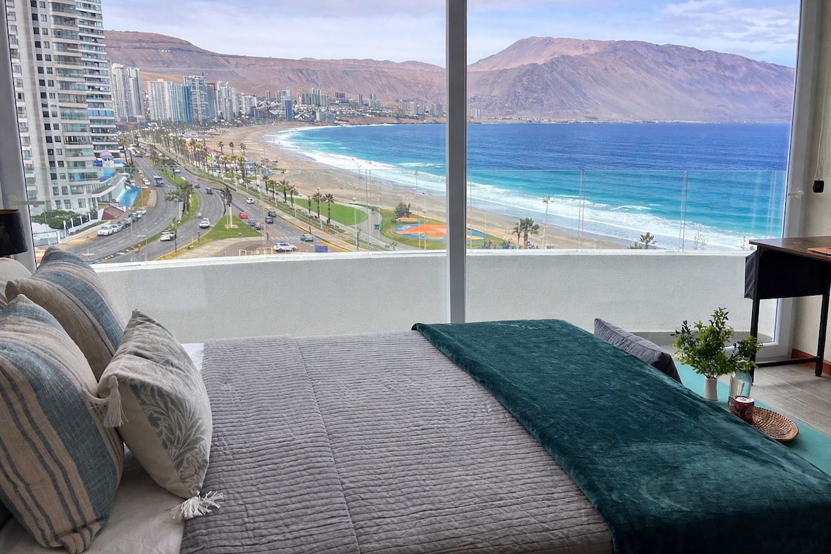 Despierta con una vista maravillosa al Océano Pacífico. Este departamento en la península de Iquique tiene vista directa a playa Cavancha desde la terraza, a pasos de la mejor gastronomía, pubs y Casino Dreams. Perfecto para una escapada en pareja o una estadía de trabajo sin complicaciones.