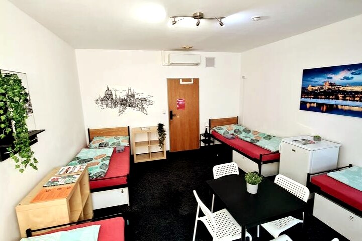 Gosti imaju svoju privatnu spavaću sobu sa dva odvojena kreveta i pristup zajedničkim kupatilima. Nevjerovatno osoblje, uobičajena muzika i događaji uživo, umjetnost, aktivnosti za goste, salon za goste, kasnonoćni bar, unutrašnje dvorište sa stolom i džinovskom džengom, kuhinja za goste, besplatan superbrzi Wi-Fi u cijeloj zgradi. Svi su smešteni u renoviranoj zgradi iz 19. veka, smeštenoj u Zizkovu, „alternativnom“ okrugu Praga, koji je udaljen 25 minuta hoda/11 minuta hoda/11 minuta vožnje tramvajem ili autobusom do Starog grada.