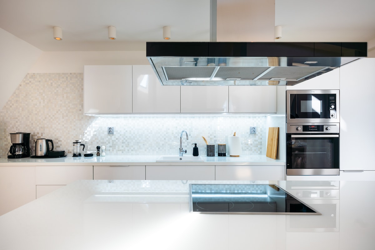 Doživite eleganciju našeg VELIKOG penthausa, u samom SRCU Praga u Vodickovoj ulici. Obnovljen 2022. godine, ovaj VRHUNSKI smještaj pruža šarmantan pogled na grad sa prostrane terase - SAVRŠENO okruženje za stvaranje trajnih uspomena sa voljenim osobama. Uživajte u našoj internoj OPREMI ZA VJEŽBANJE za vaše potrebe u fitnesu, a zatim se opustite uz našu vrhunsku TV zabavu, uključujući BESPLATNI Netflix i PS5. Unaprijedite svoj boravak u Pragu na nivo UDOBNOSTI i LUKSUZA koji je zaista nezaboravan!