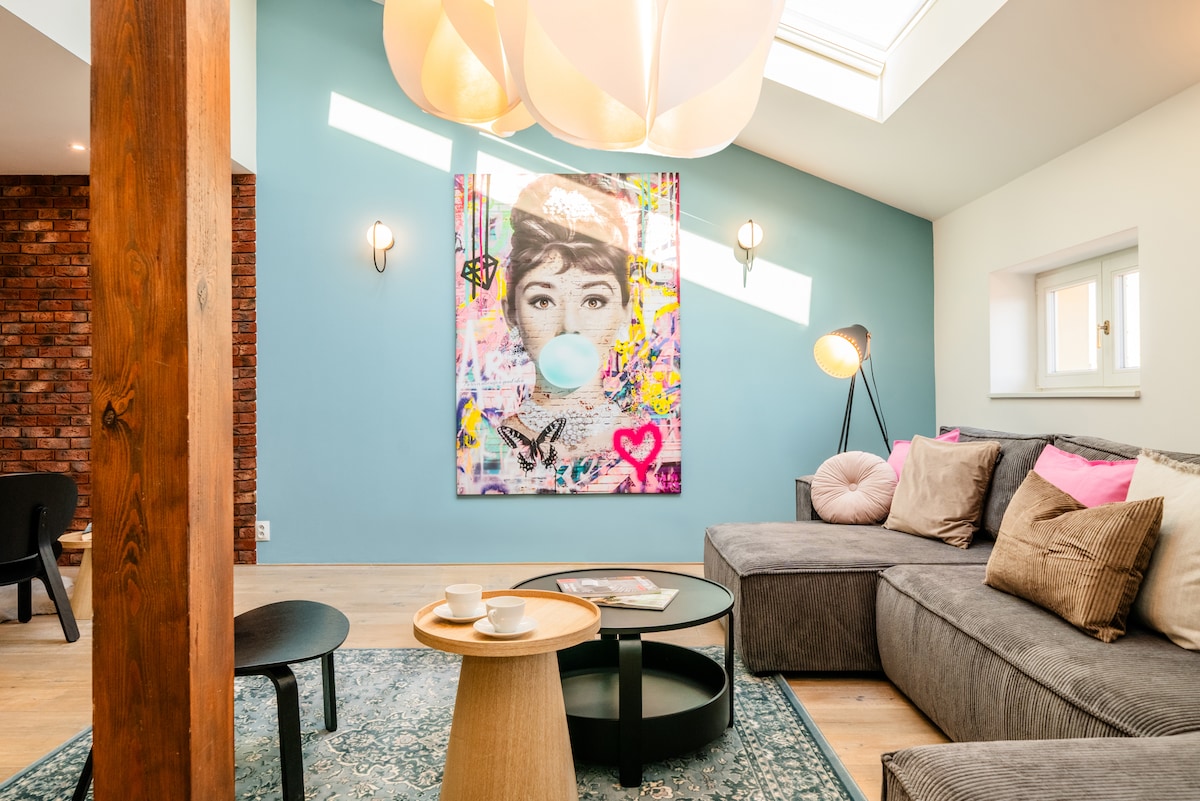 Udoban stan sa jedinstvenim industrijskim/ retro šarmom. Za najviše 4 gosta, 2 odvojene spavaće sobe, 2 LED televizora sa GER/FR/ENG/ESP kanalima, internet. Opremljena kuhinja, uključujući mašinu za sudove. Prostor za opuštanje sa kožnim dnevnim boravkom. --- Savršena veza: metro 300m (samo 3 stanice do glavne železničke stanice), tramvaj ispred kuće (10 minuta do centra, ide vrlo često), peške 20 minuta. --- Prodavnice, restorani i barovi, bankomat direktno na licu mesta. --- Moguć je parkiranje (dodatna naknada)