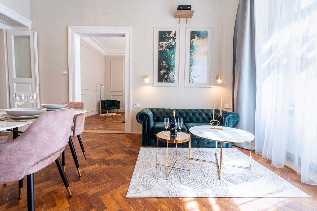 2023 Finalista VRHUNSKOG takmičenja u modernom klasičnom dizajnu. Odsjednite u najelegantnijem stanu koji ste ikada vidjeli. Imajte na umu da NIJE stan za ŽURKE. Najbolja lokacija: - 2 minute od Narodnog muzeja i Vjenceslavovog trga. - 3 minuta od glavne železničke stanice. - 1 min. od najlepšeg parka Riegrovy. Oprema - gledajte filmove u kvalitetu kućnog bioskopa - džinovski ekran - opustite se u infra sauni Dizajn - pažljivo odabrani elementi i namještaj koji podvlače istorijski stil