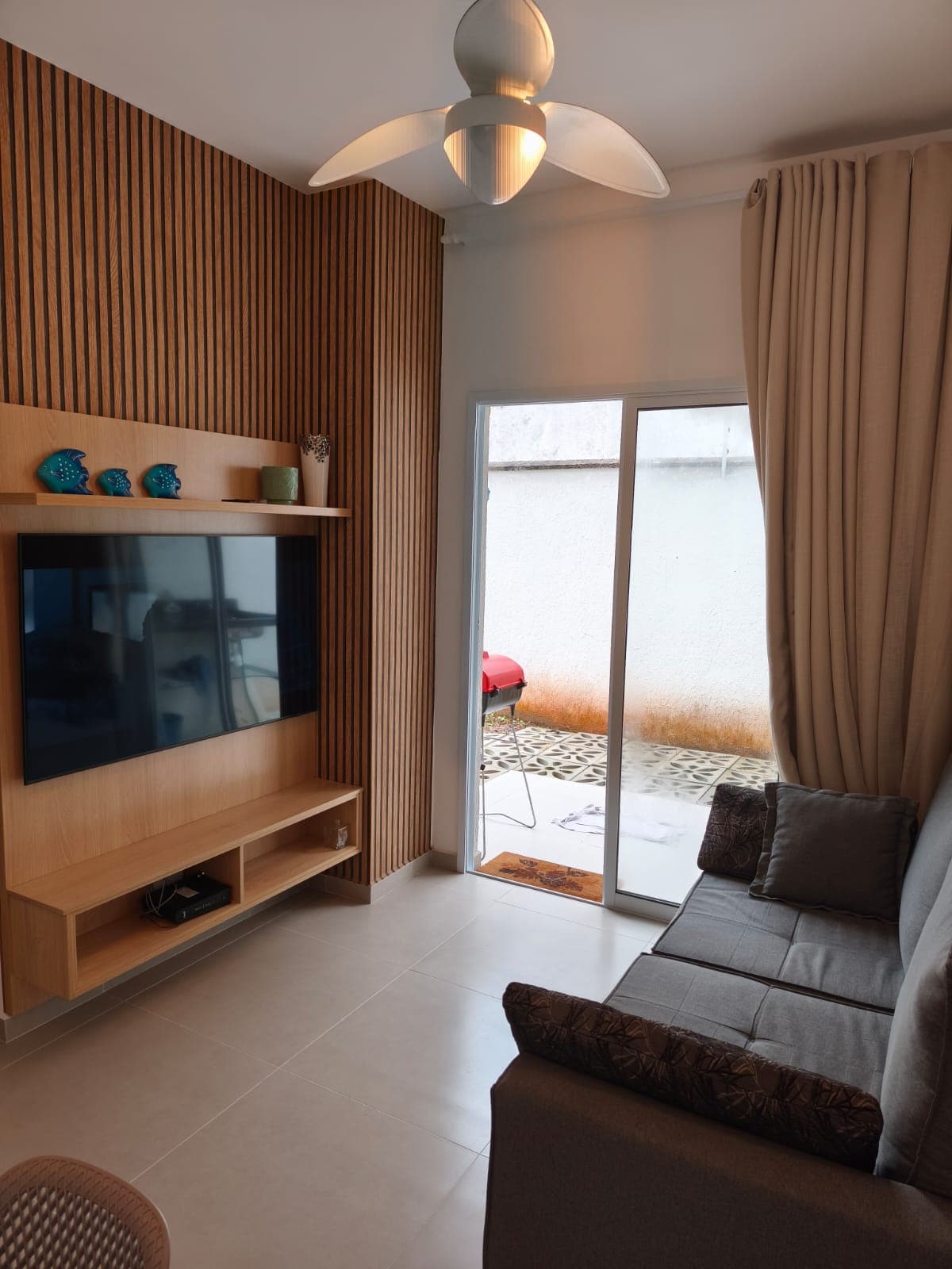 Kuća ima 2 spavaće sobe, apartman sa bračnim krevetom i spavaću sobu sa 2 bicikla. U dnevnoj sobi se nalazi kauč na razvlačenje (dimenzija: 1,40 m x 2,04 m). Za one s bebom imamo krevetac koji se može montirati (u ormaru apartmana) i lift za sjedenje (u kuhinjskom ormariću). U blizini plaže Martin de Sá, kuća se nalazi u ograđenoj zajednici sa još 6 kuća. Kondominijum je veoma tih i nudi zajednički roštilj, ekskluzivno parking mjesto i tuševe.