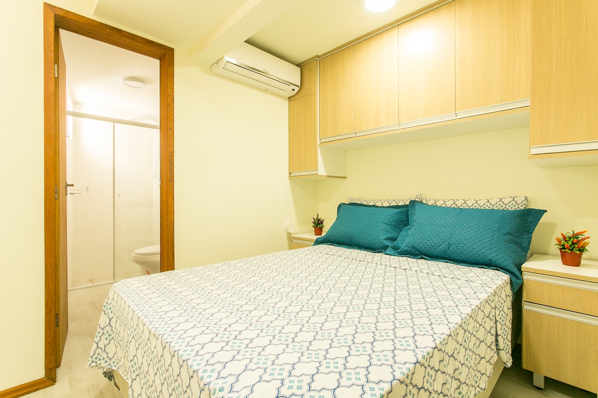 ✨ ATENÇÃO – PACOTE RÉVEILLON ✨ Não será possível aceitar reserva com check-in no dia 31/12. 🙏🏼 🏠 O apartamento acomoda até 3 adultos com muito conforto e uma energia acolhedora que faz você se sentir em casa desde o primeiro dia. 📶 Wi-Fi rápido (ótimo para home office), 🌬️ ar-cond. e 📺 TV com Netflix e Prime Video (acesso com sua conta). 🚗 1 vaga de garagem coberta e demarcada. 🏢 Condomínio com academia, lavanderia (a pago) e piscina no terraço com vista Linda