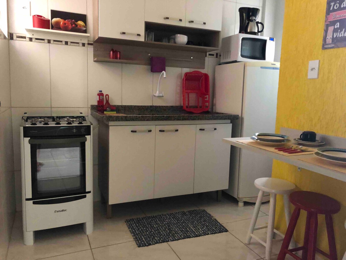 Iznajmljujem udoban Kitet za ovu sezonu, nalazi se u zgradi sa fiksnim stanarima. Soba ima klima-uređaj, besplatan Wi-Fi, novi kuhinjski pribor, TV i veličanstvenu četvrt. Rua Porto Alegre je neophodna tačka koju treba posjetiti u gradu Kabo Frio, a ovaj kitnet se nalazi jedan minut od ove tačke, dođite i upoznajte se!