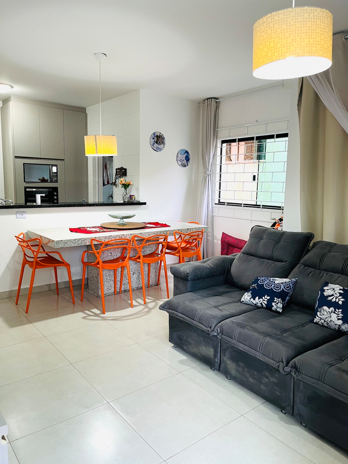 Opustite se sa porodicom i prijateljima u ovom prozračnom, udobnom, sunčanom domu! Panoramski prozor sa pogledom na more i jedinstvenim izlaskom sunca, pored roštilja.... Privatni i tihi AP, 100 m2! 2 minuta od plaže i 4 minuta od centra grada! Tržnica, aparat za sladoled, aparat za kafu, mali bar u bloku! Smartv sa Netflix-om. Wi-Fi velike brzine! Opsežna biciklistička staza koja prolazi ispred AP-a! Balkon s pogledom na planine Serra do Mar i spektakularan zalazak sunca!