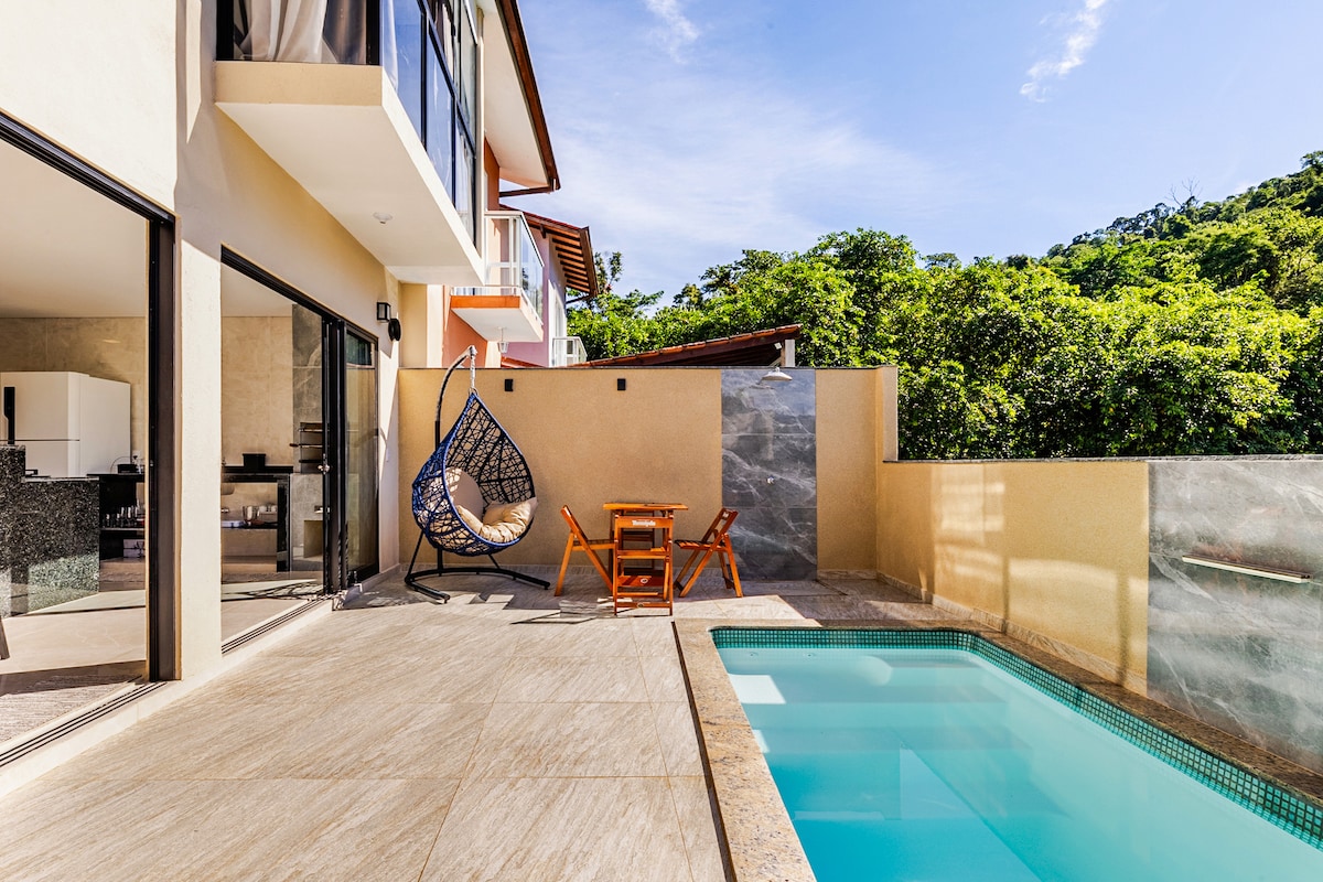 Pijuckajte osvježavajuću čašu prirodne izvorske vode, a zatim se okupajte u skrovitom prirodnom bazenu u ovom arhitektonskom remek-djelu inspirisanom prirodom u srcu šume. Berite banane, potražite m*****e i gledajte i plave leptire kako lepršaju. Smještena u ekološkom kondominijumu Aldeia Rizoma (15-25 minuta od Paraty dowtowna), kuća je veoma udobna, potpuno opremljena i sa Starlink internet konekcijom.
