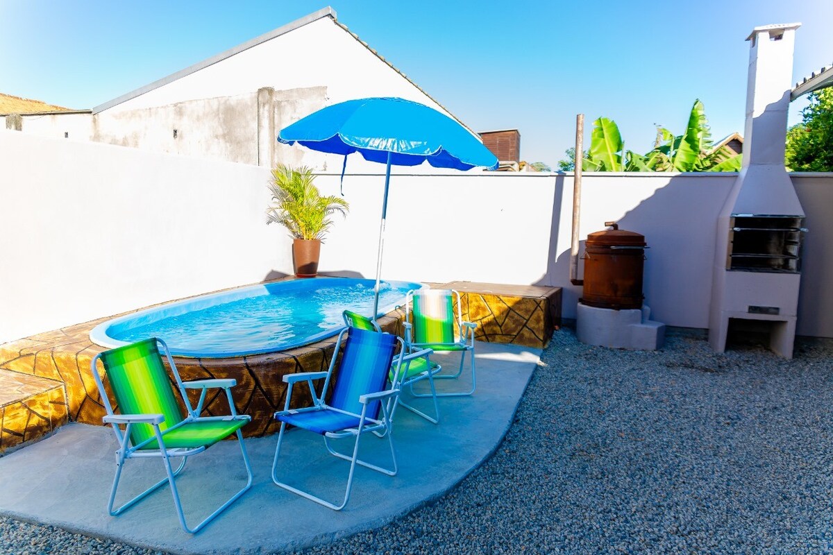 Naš prostor je dizajniran za naše goste. Imamo prostor površine 1500 m², bezbedno mesto, kompletnu i opremljenu kuću, bilijar sto, grijani bazen, prostor za hidromasažnu kadu, pristup privatnoj laguni, daskom za veslanje, kajakom itd. Naša lokacija je privilegovana za prirodne ljepote, nalazimo se oko 2 km od Praia do Rosa, ali pored ove prelijepe plaže, postoje i druge prelijepe plaže u regionu, kao što su Ouvidor Beach, Barra de Ibiraquera Beach, Praia do Luz, itd.