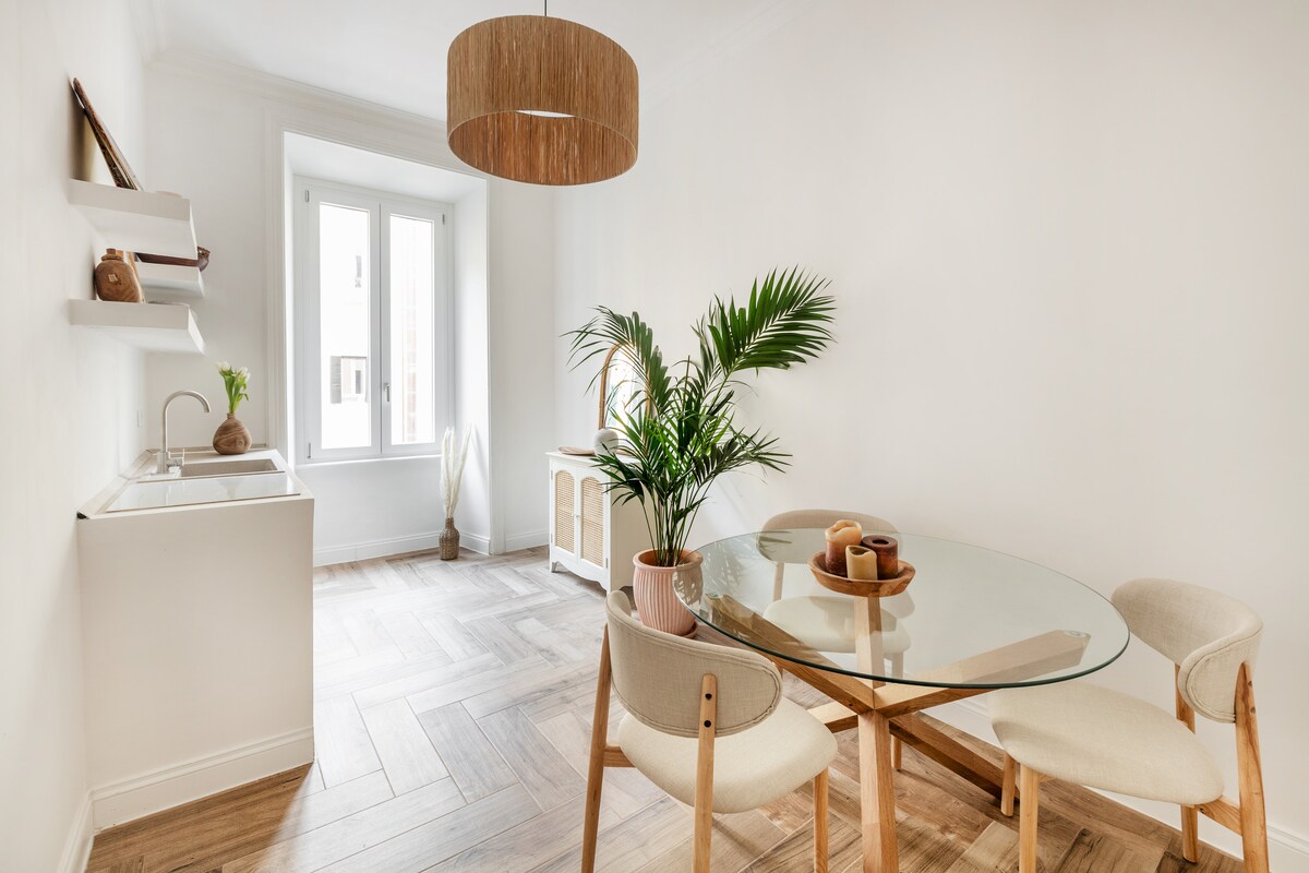 Uživajte u svežem šampanjcu uživajući u veličanstvenom pogledu na večni grad sa privatne terase ovog prostranog modernog apartmana. Životni plan doma je svetao i gostoljubiv, sa svim udobnostima na dohvat ruke. Meki nameštaj i elegantni akcenti dodaju očaravajući štih. Stan se nalazi u istorijskom centru grada Rima, savršena lokacija za sve one goste koji žele da budu uronjeni u lepote najvažnijih lokacija u Rimu.