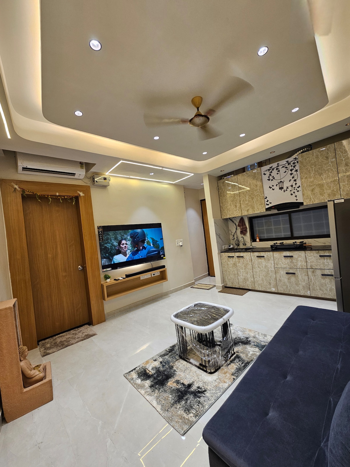 Dobro došli u svoje udobno urbano utočište! Doživite luksuz u našem elegantnom stanu sa tri spavaće sobe, tri kupatila i zadivljujućom otvorenom terasom. Uživajte u potpuno opremljenoj kuhinji, prostranom dnevnom boravku i elegantnom uređenju. Smješteni u srcu grada, blizu ste javnog prevoza, restorana i atrakcija. Sadržaji uključuju brzi Wi-Fi, pametni TV, klima-uređaj i vešeraj u jedinici. Savršeno za porodice, grupe ili poslovne ljude. Rezervišite sada za nezaboravan Kumbh boravak!