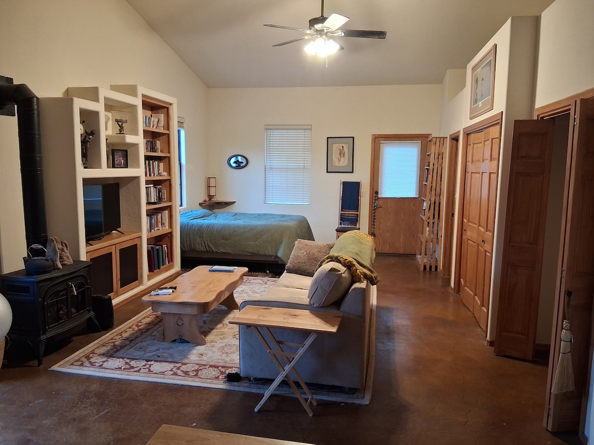 Conveniently located one block from the courthouse, this house is nestled in a quiet community just off Whiskey Row (Montezuma). There is a lot of privacy and isolation for your full relaxation. This room is a blocked off from the rest of the home and is independent of itself. You have your own private entrance and keyed entry. This space is simply an oasis! There is direct access to the outdoor seating area, where you can enjoy the salt water jacuzzi hot tub, the glass firepit, and BBQ grill.