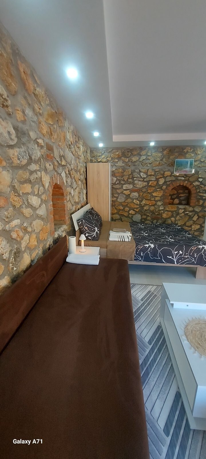 Uživajte u miru i tišini ove predivne male kamene kuće sa kaminom na ivici šume u malom selu Oksija, na samo 10 minuta hoda od malog jezera Prespa. Kuća datira iz 1920. godine, a u potpunosti je renovirana 2014. godine sa prilagođenim dizajnom koji su napravili lokalni materijali i zanatlije. Okolina je prilično ruralna, sa ovcama i konjima na bliskoj udaljenosti. Jezera, netaknuto utočište za ptice, jedan je od najlepših i najbolje očuvanih pejzaža u Evropi.