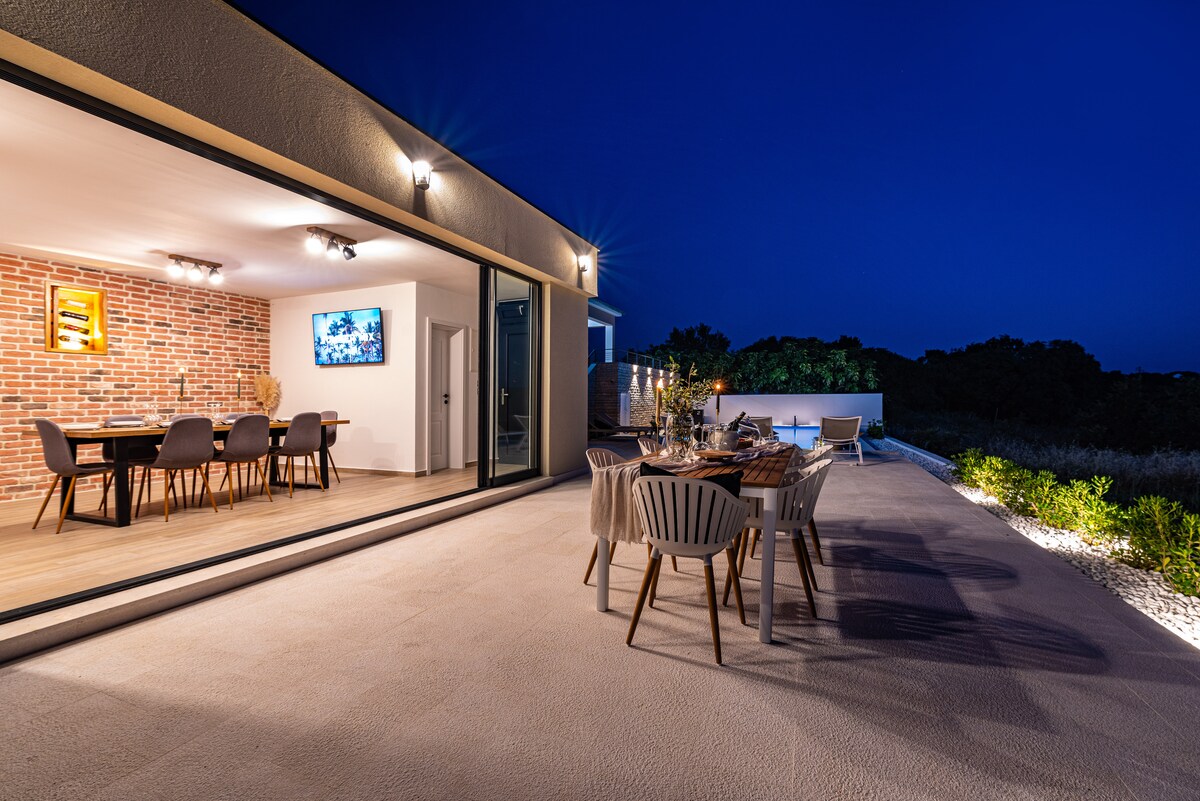 Vila Buterin se nalazi u mirnom i tihom ribarskom gradu Novigradu (Dalmacija) udaljenom samo 32 km od drevnog jezgra Zadra. To je potpuno nova vila koja ima moderan dizajn enterijera, kao i neverovatan spoljni prostor. Vila ima veoma veliki bazen, prostor za roštilj i igralište. Nalazi se na vrhu male litice okružene Novigradskim morem, planinom Velebit i borovom šumom. Nudi sve što vam je potrebno za prijatan i savršen odmor.
