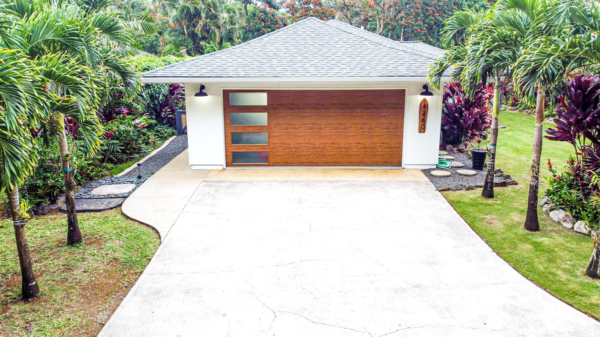 Dobro došli u Mango House u srcu Prinsvila na sjevernoj obali Kauaija. Ovo nedavno renovirano tropsko utočište sa 3 spavaće sobe i 2 kupatila, sa klima-uređajem, skriveno je ispod stabla manga na kraju tihog slepog puta i povezano je sa privatnim zelenim pojasom od 2,5 hektara. Uživajte u potpuno opremljenoj kuhinji, opremi za plažu, sportskoj opremi, biciklima, tušu na otvorenom i ognjištu. Praktično smješten na pješačkoj udaljenosti od biciklističke staze, nekoliko plaža i na kratkoj vožnji do zaliva Hanalei, plaže Anini i Kilauee.