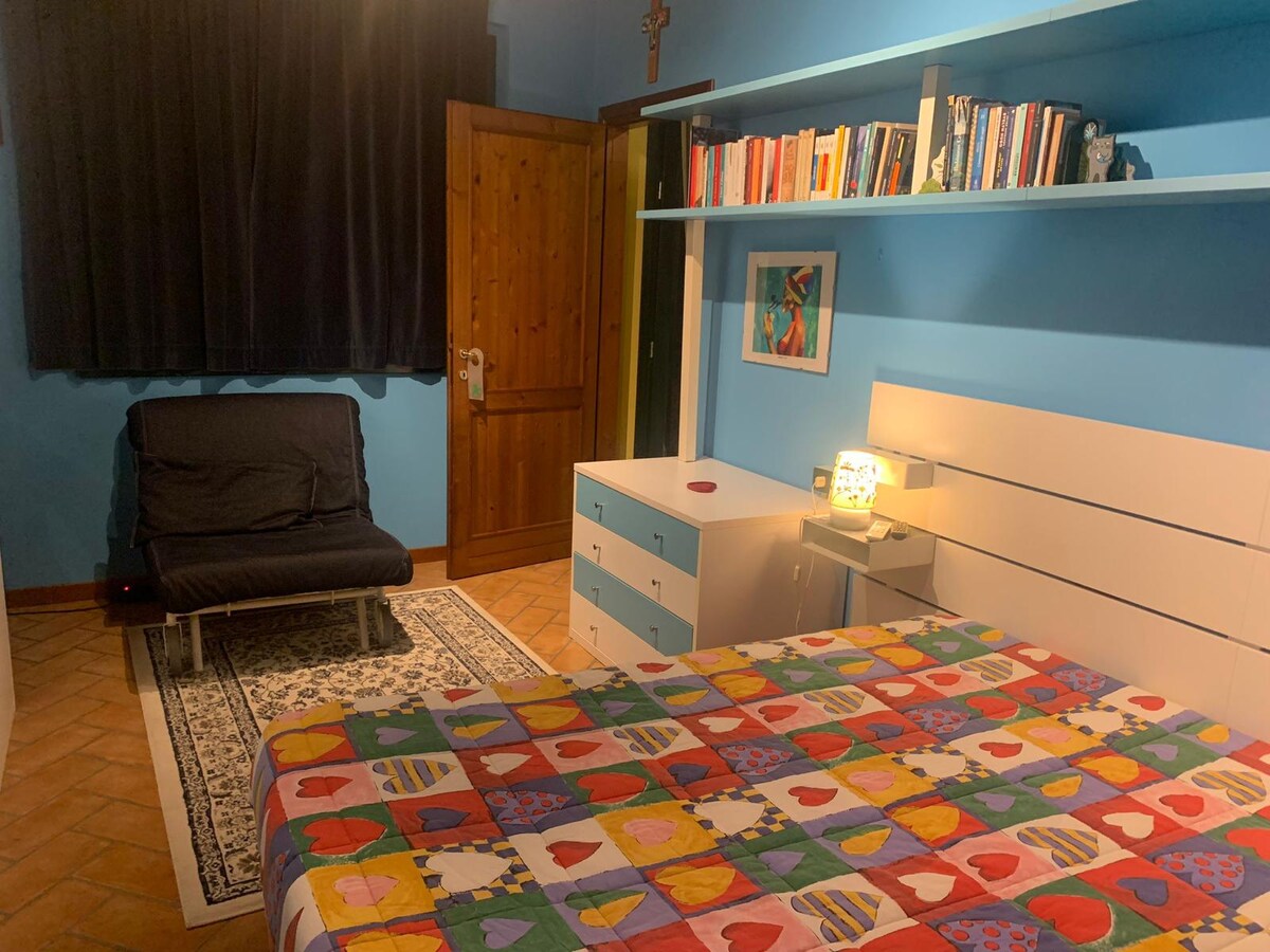 Casa in campagna, ristrutturata nel 2023 classe A4. Una porzione di casa è adibita a B&B; arredata con gusto, con oggetti semplici ma raffinati. I locali sono suddivisi in ampio ingresso, salone per la colazione con divano letto matrimoniale, camera con bagno privato, wifi. Colazione fatta in casa con prodotti tipici sarà servita con cura dalla gestione. Parcheggio privato e giardino interno presentano un ambiente tranquillo. Posizione ideale per partenza escursioni in bicicletta e a piedi.