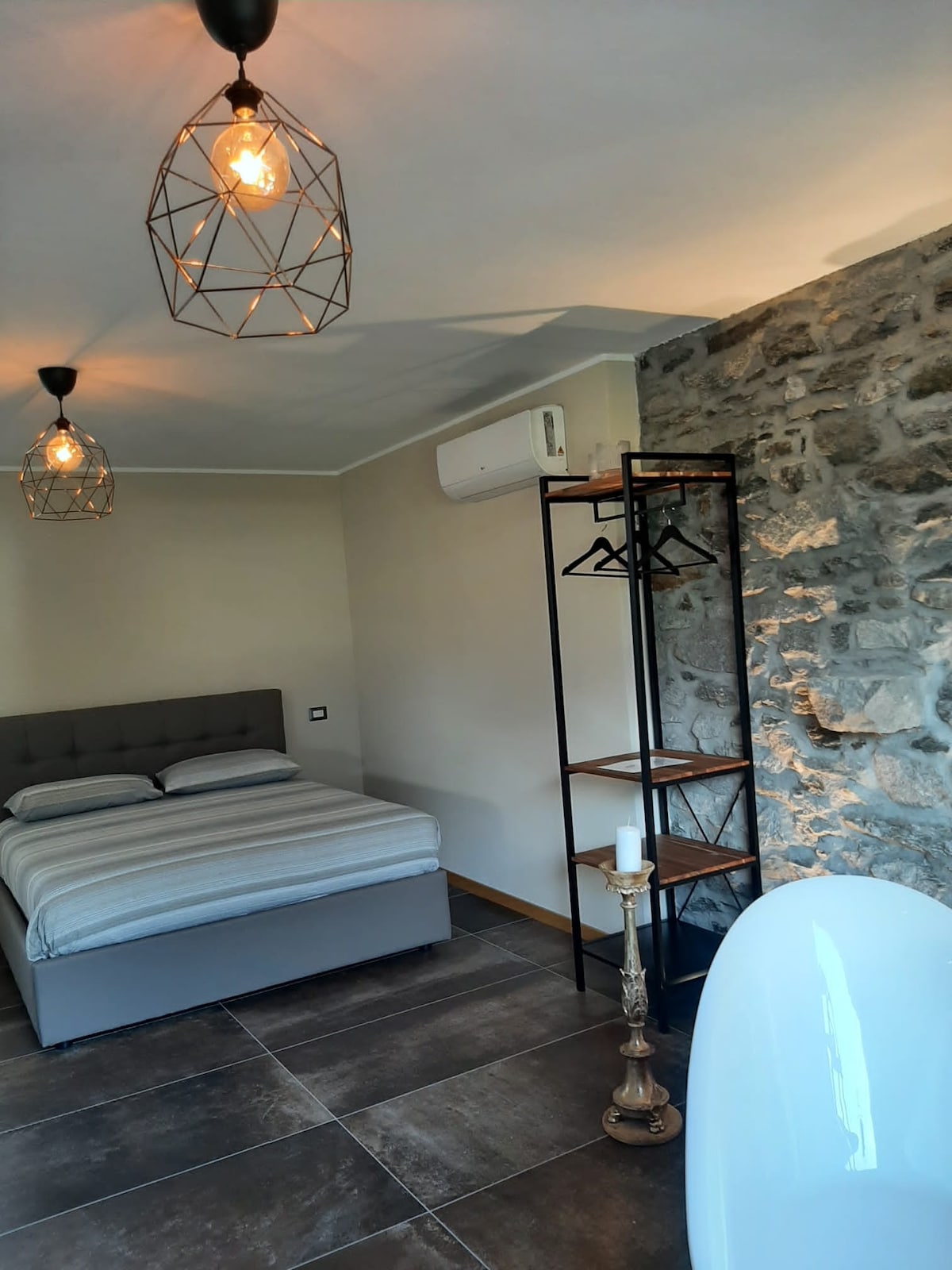 Najviše 4 gosta mogu da uživaju u apartmanu, postoji udoban bračni krevet i dva odvojena kreveta. Namješten na jednostavan, ali funkcionalan način, tu je i prostrana garderoba sa dvoja vrata. Privatno kupatilo je opremljeno svakom udobnošću, uključujući fen za kosu, šampon za tuširanje sa jednom dozom i peškire za svakog gosta. Zahvaljujući velikim francuskim prozorima moguće je pristupiti balkonu sa stolom i stolicama, uživajući u pejzažu planine Legnone i jezera Komo. - utičnice tipa L -