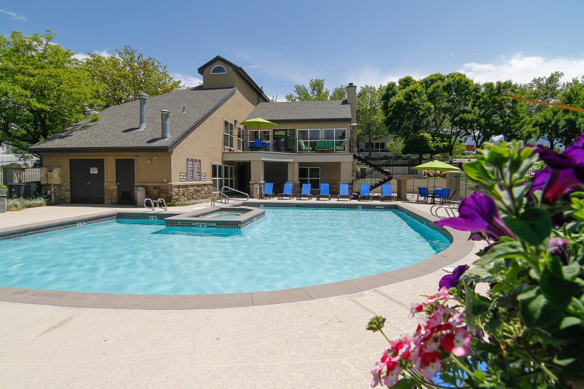 Potpuno novi stan sa glavnim kupatilom sa bračnim krevetom, druga spavaća sa bračnim krevetom i susednim kupatilom sa kadom od 2 metra. Stan obuhvata kuhinju za kuvare, kamin na gas i parking. 15-20 minuta od 4 skijališta svetske klase, uključujući Brajton, Solitude, Alta i Snoubird, 30 minuta od aerodroma. Uživajte u zimskim sportovima ili letnjim događajima i aktivnostima, uključujući planinarenje, brdski biciklizam, koncerte na otvorenom i uživanje u sjajnim restoranima i kupovini na samo nekoliko minuta. Broj dozvole: 164481