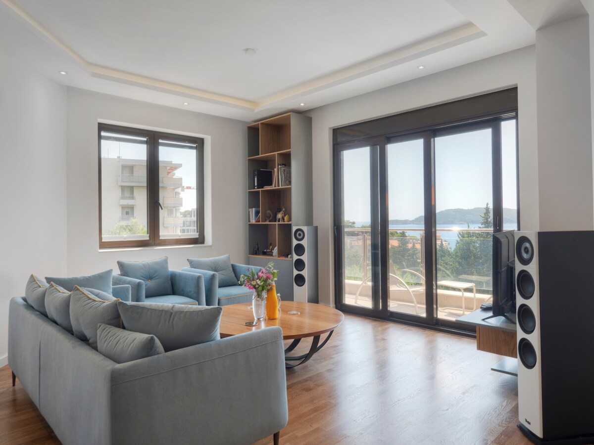 Luxury two bedroom apartment next to the sea with amazing sea view. This apartment is located in one of the most beautiful places in Budva,Rafailovici. Peaceful place,with fish restaurants on the beach,place you will enjoy. Apartment has two bedrooms,two bathrooms,big living room with kitchen and big terrace. Front side of apartment has big windows so you enjoy in sea view from every corner of apartpment. This apartment also offers you privacy and terrace with romantic view just for you Welcome!