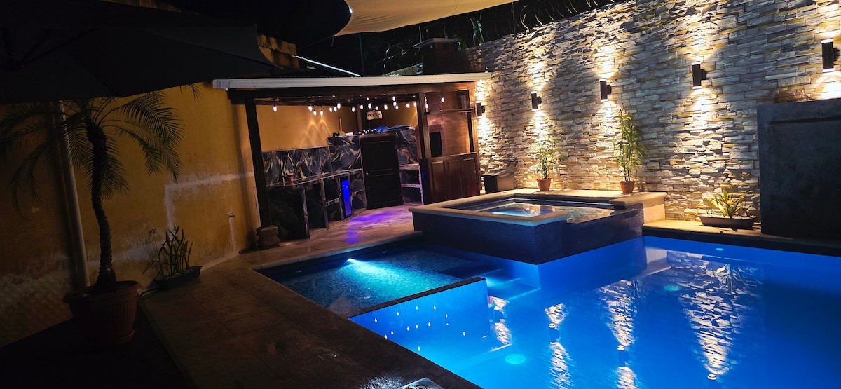 Uživajte u opuštajućem boravku u ovoj modernoj, čistoj, tihoj i bezbjednoj kući koja se nalazi u Puerto Barriosu. Znamo da su prekidi u snabdevanju toplotnom energijom i strujom česti u ovom području, pa imamo uključen generator za hitne slučajeve, bez dodatnih troškova. Pored toga, bazen + đakuzi, jedinstveno na Airbnb-u! Kuća se nalazi u malom stambenom kompleksu, bazen je odvojen, nije unutar kuće. Odvojeni privatni ulaz.