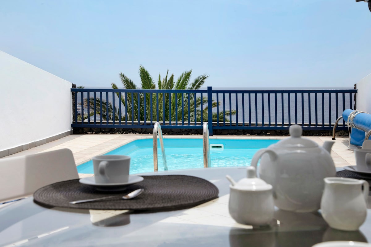 Zapanjujući renovirani objekat sa pogledom koji oduzima dah, na more i Fuertaventuru. Vrlo privatno, ali ne zanemareno, u blizini Puerto del Karmen. Fantastične terase za sunčanje i objedovanje. Ugrađeni roštilj, hidromasažna kada i sto za bilijar, sve u prizemlju. Na gornjem spratu se nalazi salon otvorenog plana/potpuno opremljena kuhinja, prostrana spavaća soba i velika tuš kabina. TV ravnog ekrana od 42"sa kompletnim TV paketom, besplatnim internetom. Parking sa vratima koja se mogu zaključati. Peškiri za plažu su obezbijeđeni.