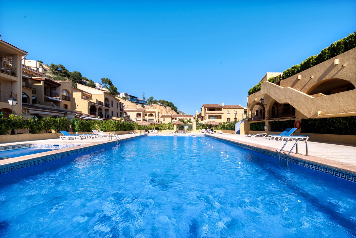 Dobro došli u Alteu u šarmantnom Pueblo Mascaratu, sa mnoštvom besplatnih parkinga! Ovaj luksuzni stan nudi pogled na more koji oduzima dah i savršena je baza za bicikliste. Sa 2 spavaće sobe, 2 kupatila, kuhinjom, dnevnim boravkom, TV-om i besplatnim bežičnim internetom, imaćete sav prostor koji vam treba za udoban odmor. Samo 1 minut hoda od plaže, možete da uživate u kristalno čistom moru svakog dana. Iskustvo koje ćete ovde imati biće veličanstveno. Rezervišite sada za nezaboravan boravak!