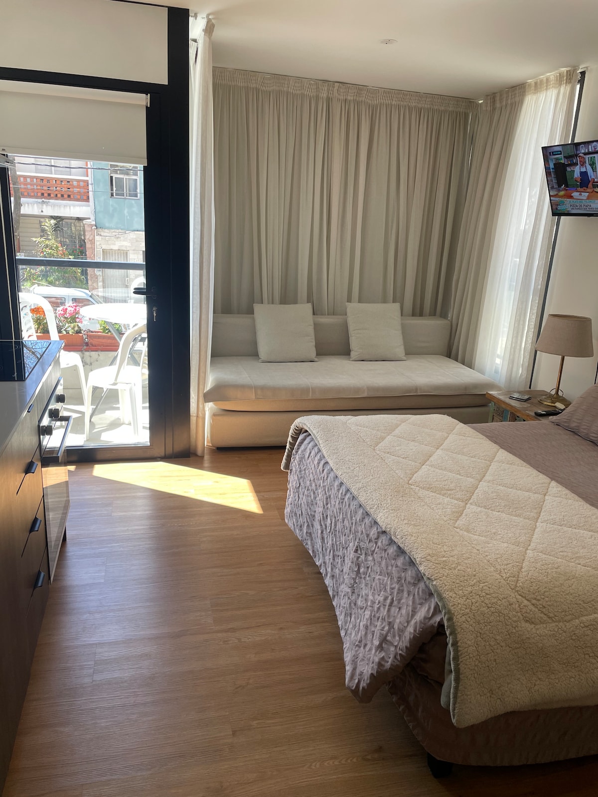 Uživajte u jedinstvenom boravku u ovom prelijepom apartmanu sa ekskluzivnim dvorištem koje se nalazi u prestižnoj zgradi More Echevarriarza. Ovaj smještaj kombinuje udobnost, stil i pristup vrhunskim sadržajima. Kuhinja opremljena, kupatilo i udoban dizajn koji maksimalno iskorišćava prostor. U srcu Pocitosa, u blizini bulevara,restorana i tržnih centara. Sadržaji: ✨ Bicikli ✨ Bazen ✨ Teretana. ✨ Grilleros na krovu (boravci duži od 30 dana, uz naknadu) ✨ Veš (uz naknadu) Bezbjednost ✨ non-stop ✨ Cowork