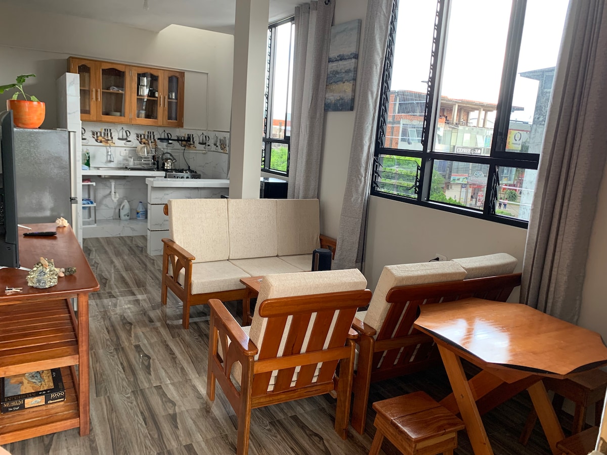 Dobro došli! Udoban moderan stan, 4 minuta hoda do glavnog trga. Udobne sobe, dobro opremljena kuhinja, raskošna, pametni TV i zajednička terasa. Besplatna Cochera (obavijestite barem 5 dana unaprijed). Rezervišite sada i uživajte u Puerto Maldonadu! Napomena: Maksimalni broj gostiju je 4 osobe i 1 kućni ljubimac.