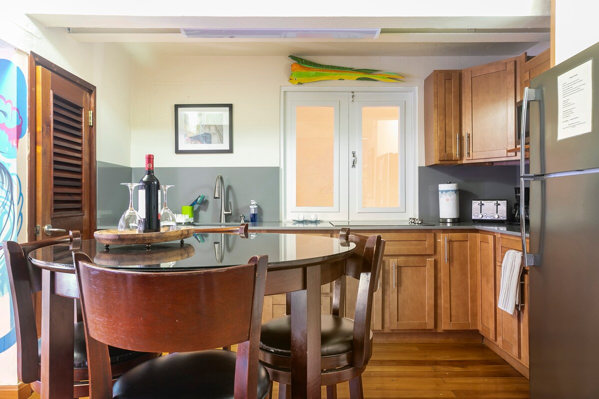 Ovo veliko potkrovlje preplavljeno suncem ima dvije privatne terase, spoljnu kadu i bračni krevet. Otvorena kuhinja sa barom za doručak je potpuno opremljena, a prostrano kupatilo ima jedinstveni betonski umivaonik i tuš-kabinu sa padavinama. Dizajnerski kauč u dnevnoj sobi može da primi trećeg gosta. Jedinica je opremljena Roku TV-om i klima-uređajem. Plaža je kratka 5-7 minuta hoda i ima mnogo restorana i prodavnica, a sve je na pješačkoj udaljenosti.
